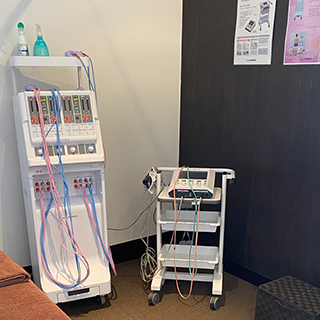 電気の刺激で筋肉の緊張を和らげ、血流を改善します。血行が促進されるので、体の痛みの緩和やコリを治療します。