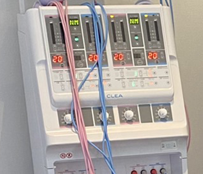 電気の刺激で筋肉の緊張を和らげ、血流を改善します。血行が促進されるので、体の痛みの緩和やコリを治療します。